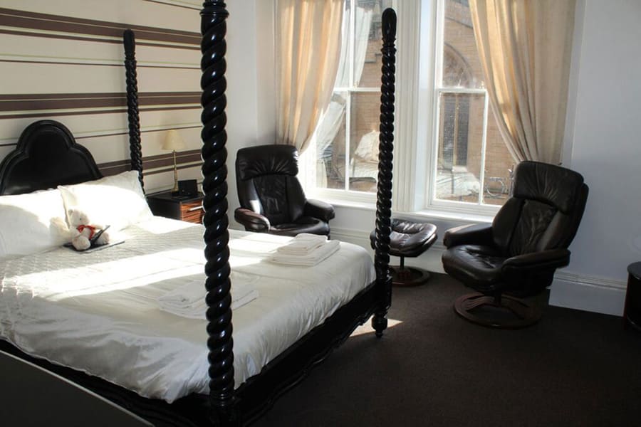 The room is located on the first floor. Offering a modern en suite, great view, has a four poster king-size bed, two reclining chairs with foot stools, iPhone-6 docking station, hospitality tray, Hairdryer.Room Facilities: